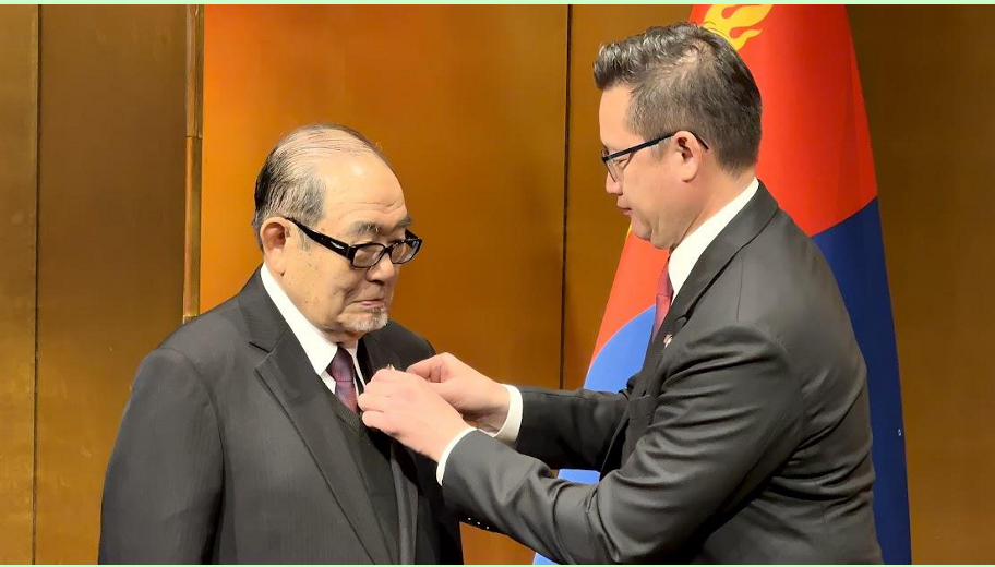 この度、弊社顧問の浜本知一が、モンゴル国大統領より最高勲章の1つである「ナイランダル(友好)勲章」を授与されることとなり、2025年11月26日、明治記念館にて、授与式典が執り行われました。