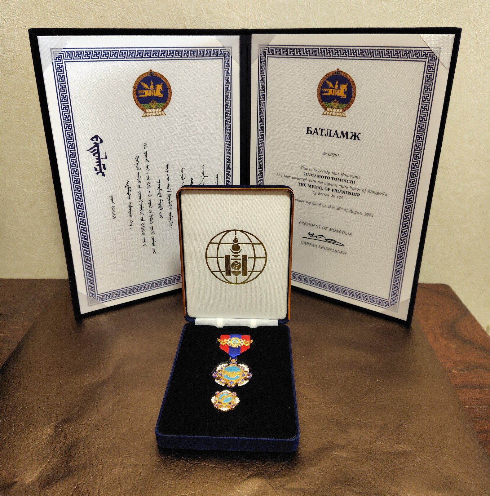 モンゴル国ナイランダル(友好)勲章授与について